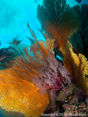 One huge granite boulder surrounded by more large granite rocks forms the main pinnacle, with two more boulder pinnacles to the north. The boulders are interspersed with hard coral structures adorned with soft corals and gorgonian sea fans.