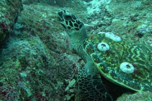 Hawksbill Turtles inhabit warm tropical and subtropical waters around the globe, showing strong site fidelity to specific foraging and nesting areas.