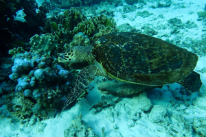 Hawksbill Turtles inhabit warm tropical and subtropical waters around the globe, showing strong site fidelity to specific foraging and nesting areas.