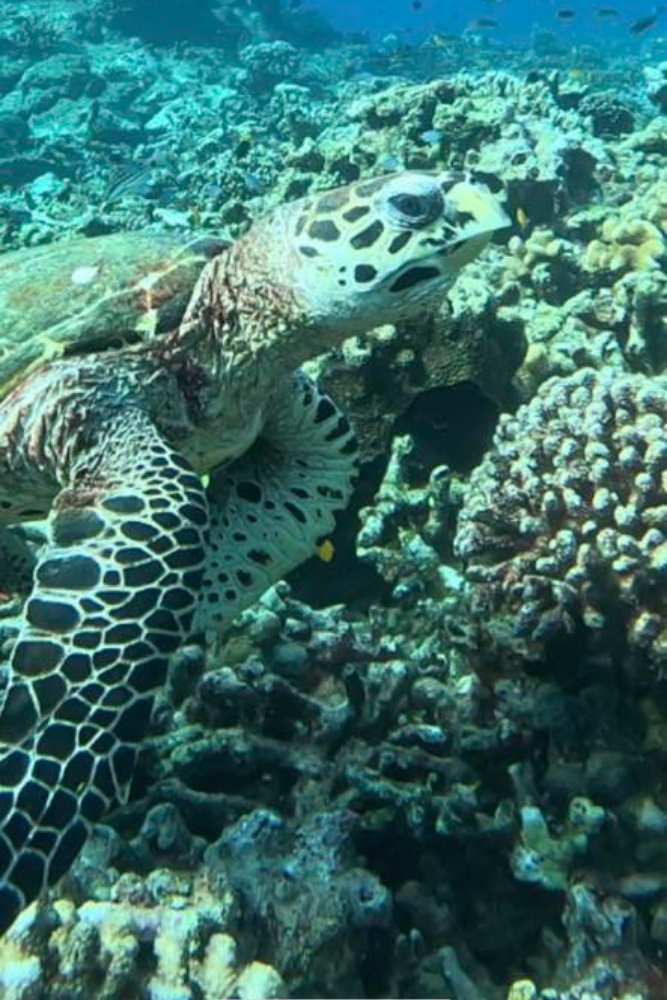 Leah also has a unique connection with one of the Big Blue team. All six sightings of Leah in the Andaman Turtle Watch database were recorded by instructor Sam Hunt, who fondly named her after his sister Leah back in the UK. In an incredible twist of fate, later that season Leah (in human form) visited Sam in Thailand to explore the underwater marvels of the Andaman Sea – and during her dive at Ao Pakad she came face to face with Leah the turtle, her namesake! It was a magical moment Leah will never forget, and a perfect example of the personal connection Andaman Turtle Watch creates between people and the turtles that inspire conservation action across the world. Small moments like these remind us that the ripple effect of community science and shared experiences should never be underestimated.