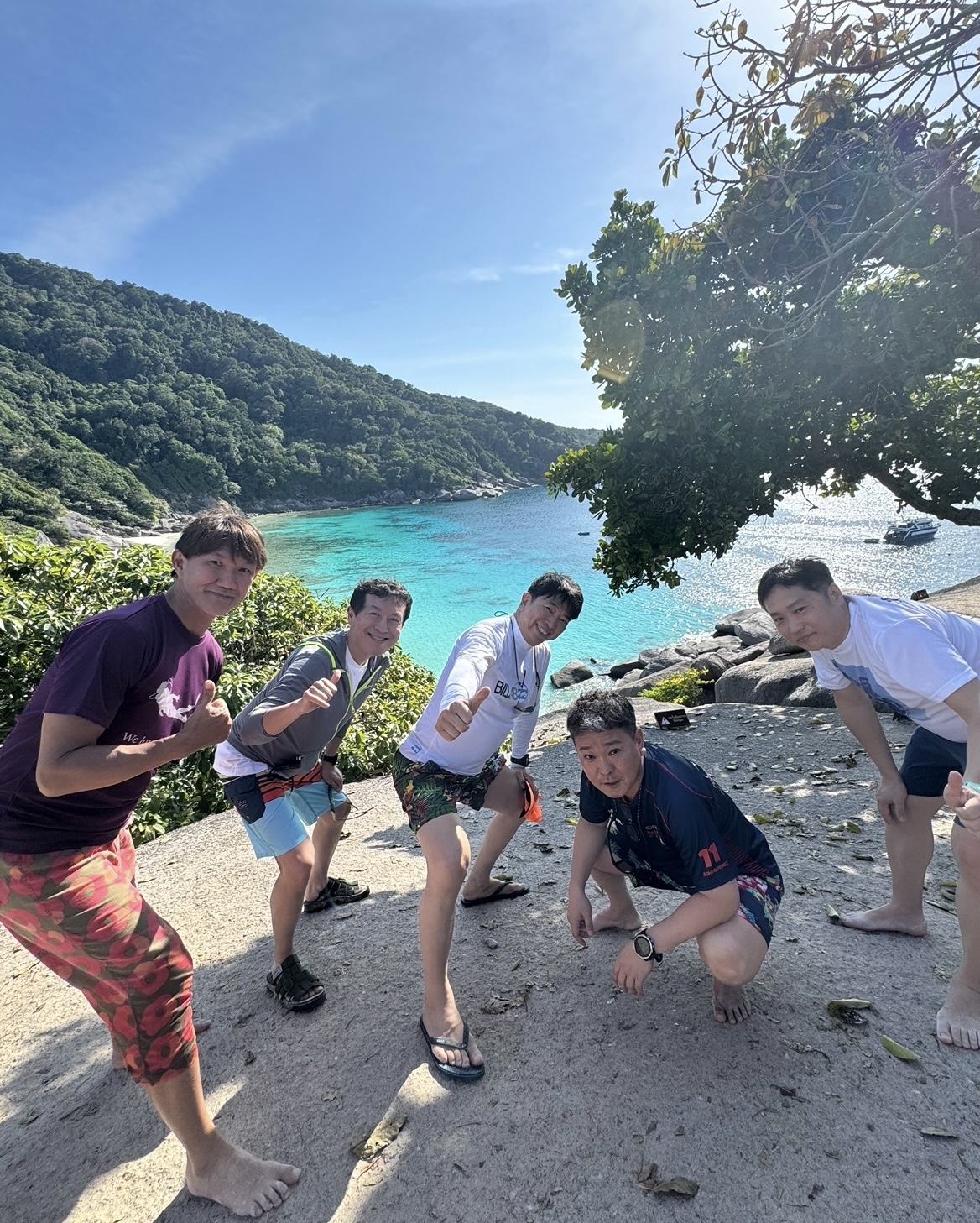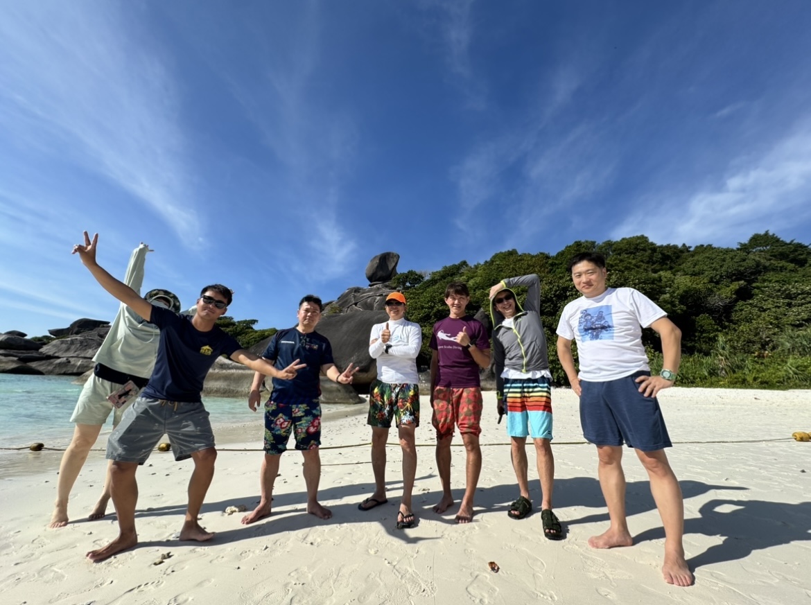 The climb up to Sail Rock on Island Eight helped to ease the guilt of P’Ann’s famously decadent light snack of pizza, French fries and bao buns. Dive Four rounded off an excellent first day with a sunset splash at Aow Khon Gaer.