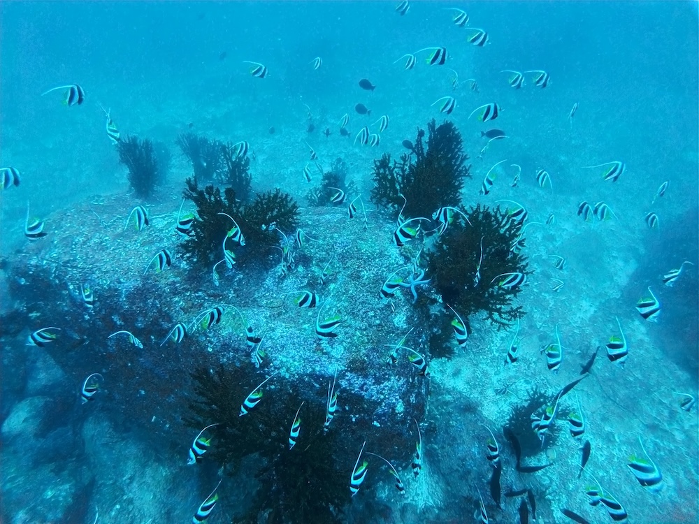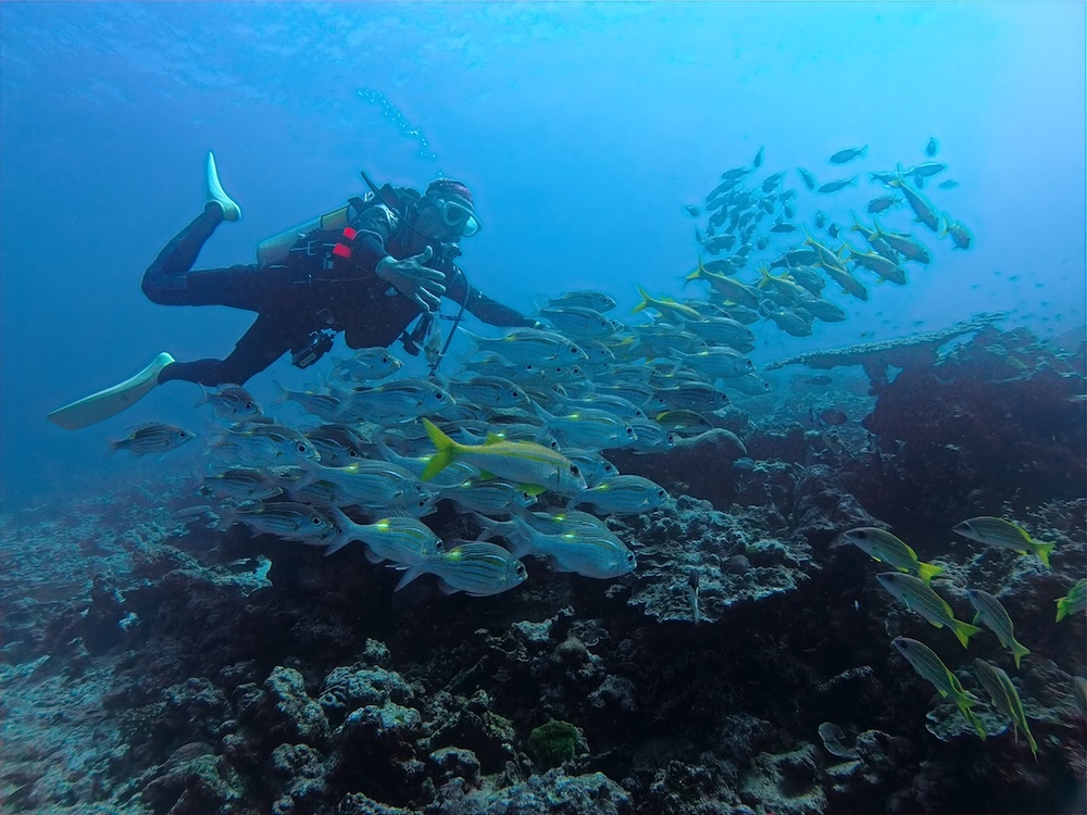 Conditions remained a little lively, but underwater life was thriving. The reefs were busy with schooling fusiliers, curious batfish, and some lovely macro finds tucked into the cracks and coral heads.