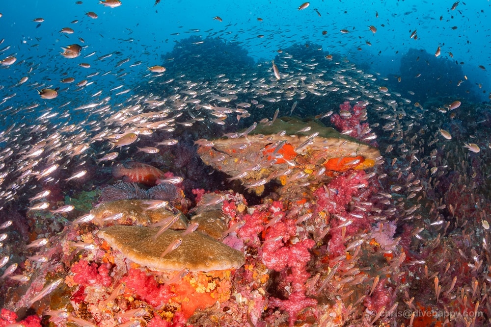 A big thank you goes to Chris from @divehappy.com for sharing some brilliant photos from the dive and we have uploaded just a few with this blog with more to follow. As we wrapped up at Richelieu, MV Blue Dolphin set course south. The sea settled beautifully, giving us a somewhat smoother yellow hued evening cruise toward Koh Bon, as we shared stories over a cold beer or two the call to leave early felt justified as everyone enjoyed the evening.