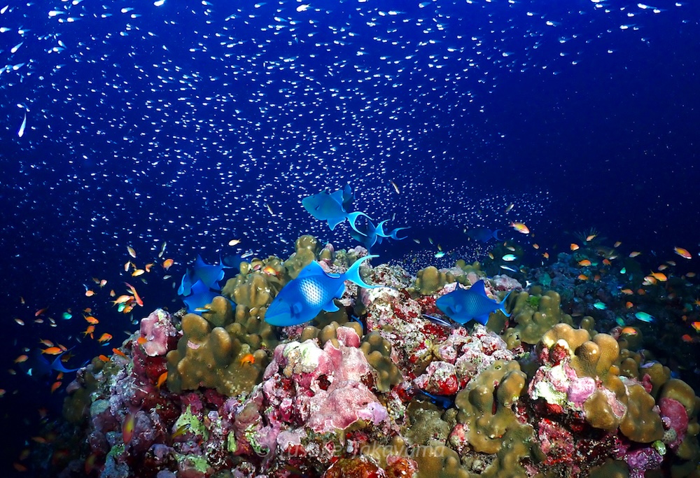 The light was fading for our final dive of the day, again at the pinnacle. Though not as colourful underwater, a passing giant manta ray more than made up for it, with most groups encountering this magnificent creature. Epic stuff!