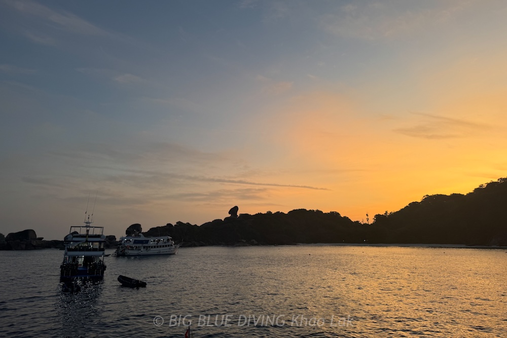 The Big Blue Khao Lak Diving Academy was in full swing this trip with various courses running throughout. Dive four was our night dive—a first for many onboard. We picked Turtle Rock as the perfect location, and it delivered brilliantly. The highlight? A turtle swimming directly over our heads in the torch beams!