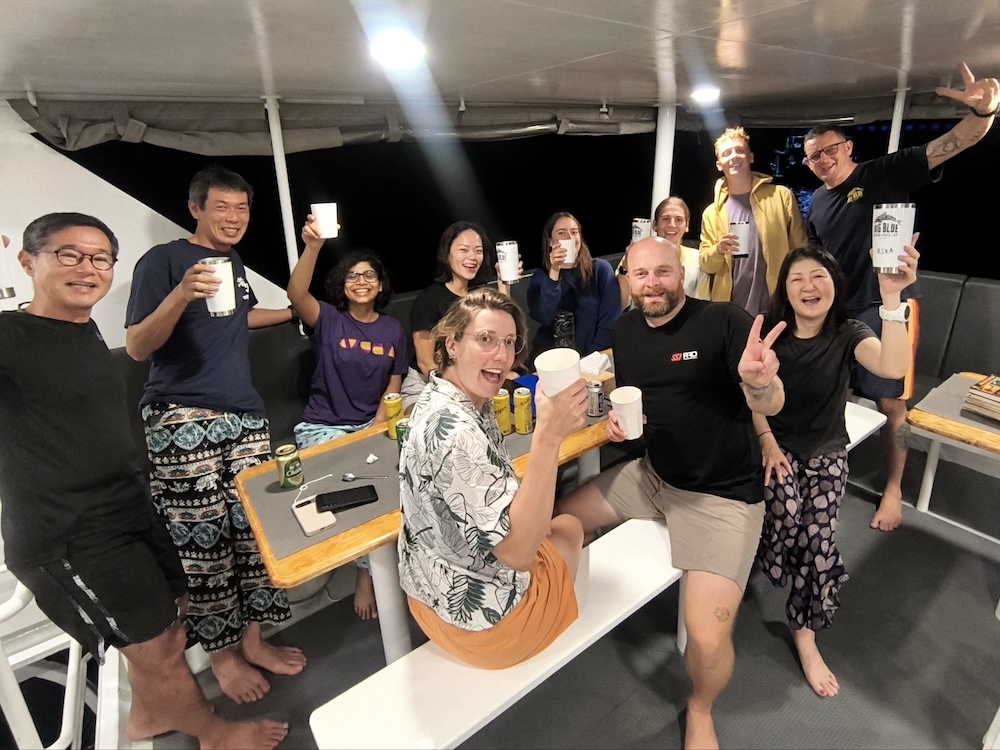 From the moment everyone stepped on board, it was clear we had a fantastic group. The vibe was easy, fun, and full of good humour and the occasional cheeky innuendo during surface intervals, and then plenty of laughs around the dinner with a beer or 2.