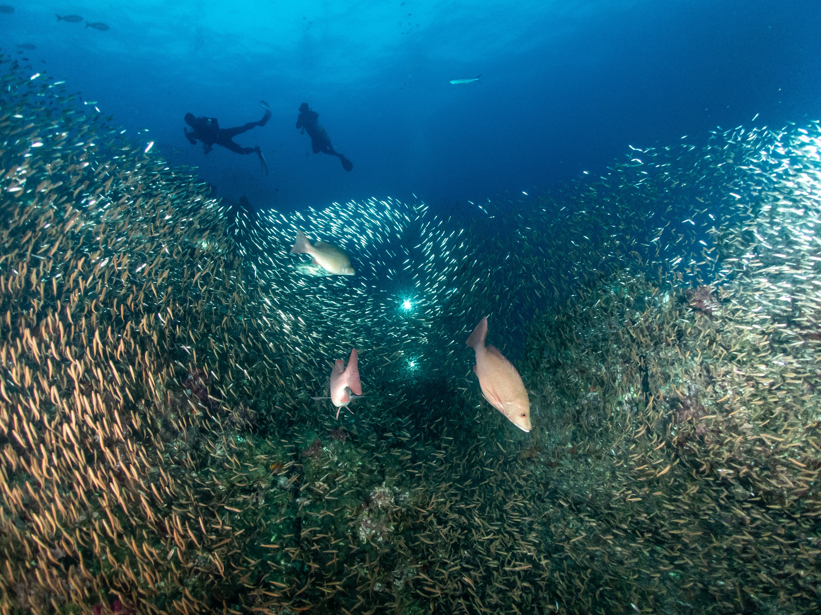 Richelieu Rock, we were treated to full-blown Blue Planet energy — swirling clouds of glass fish, predators moving with purpose, and that constant, organised chaos that somehow makes you forget the world above the surface just for a little while, and there is nothing wrong with that.